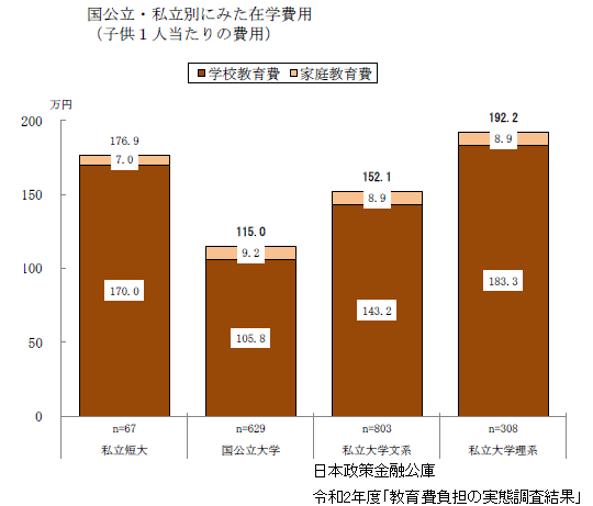 大学、短大の教育費