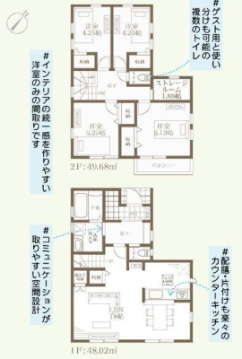 2WICで収納豊富なためお部屋が機能的に片付きます♪対面キッチンで家族の会話が増える◎
