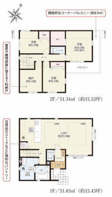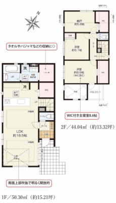 3つのWIC、各居室収納があるためお部屋が片付きます♪家族の集まるリビングは広々LDK18帖で床暖房付きです◎