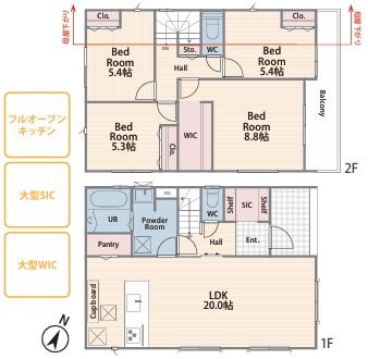 家族の集まるLDKは20帖以上で広々と使用できます♪WIC、SICやパントリー等収納豊富でお部屋が片付きます◎