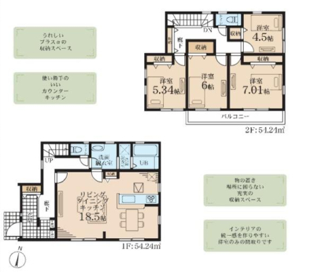 家族の集まるリビングは広々LDK18帖!各居室に収納があるためお部屋が片付きます♪