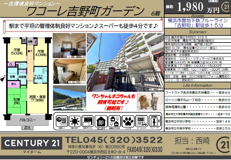 2025/9 成約までの期間:7ヶ月 「横浜」駅から徒歩10分・周辺に商業施設多数・複数路線利用可能、と魅力的な立地